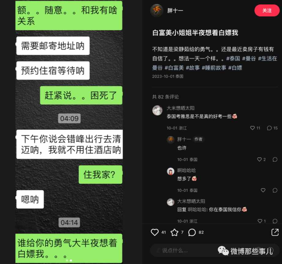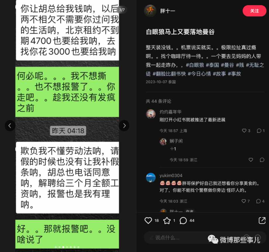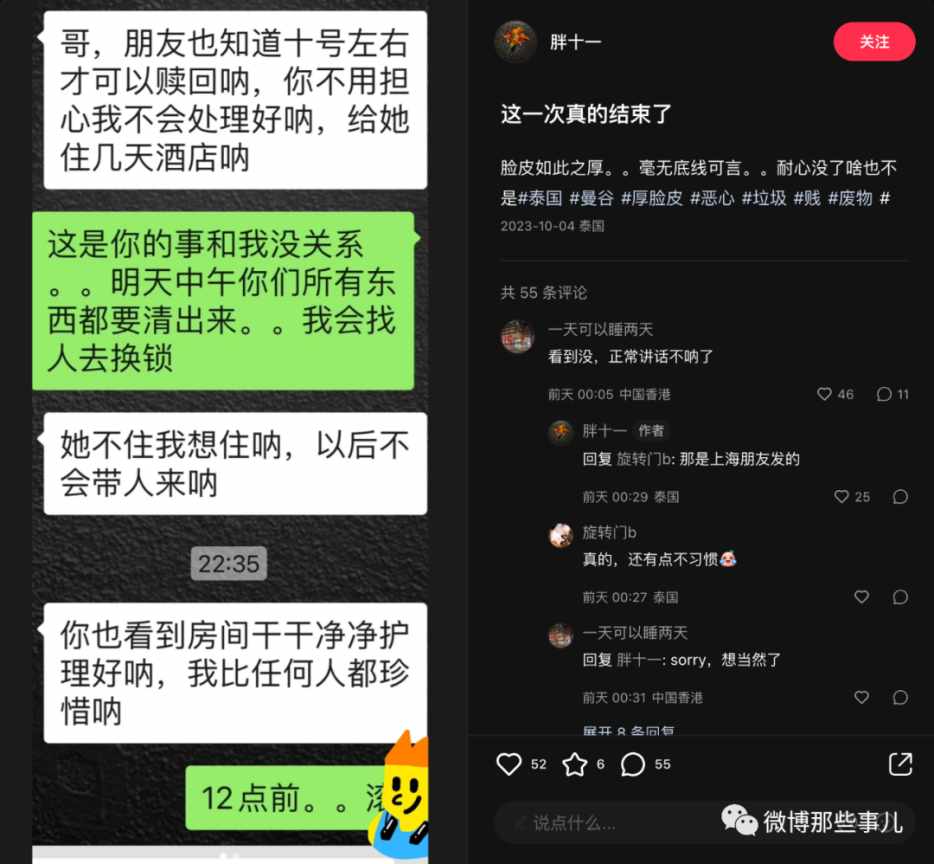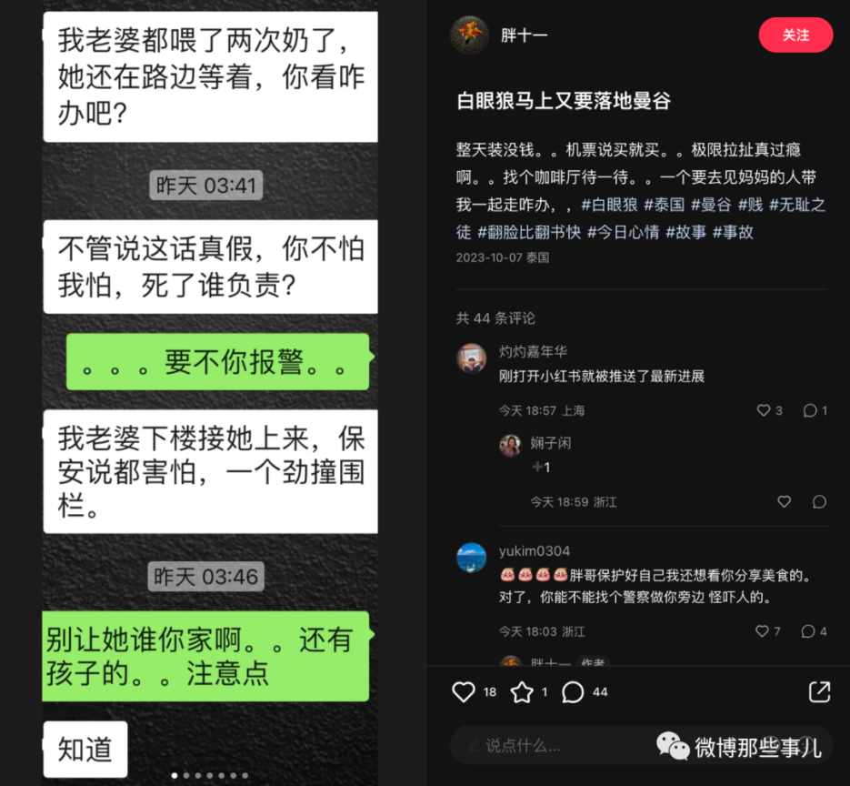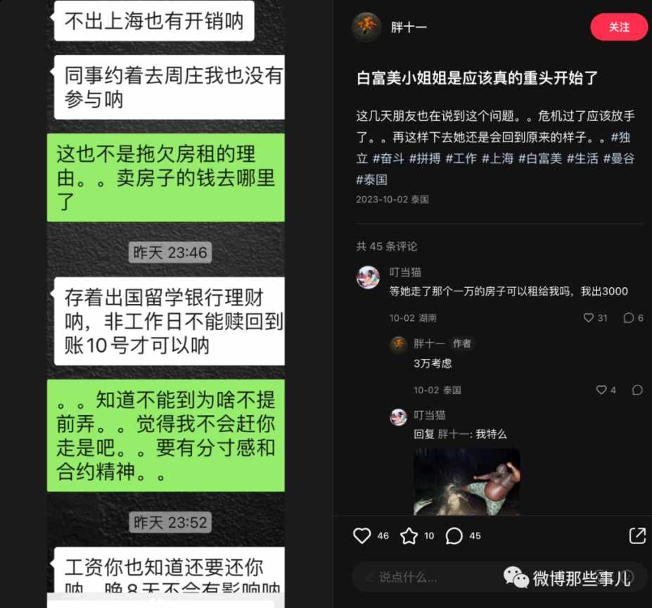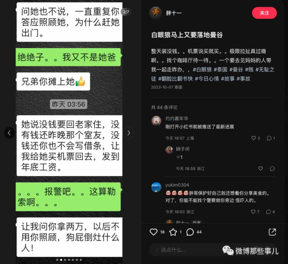 我当时看了就划过了,没想到过几天又刷到后续,这个女生回国后到去那个跑单的富二代家里闹,公司闹,酒吧闹,最后如愿要到钱了,把机票钱还给博主了,到这里我觉得好像有点意思就点了关注。