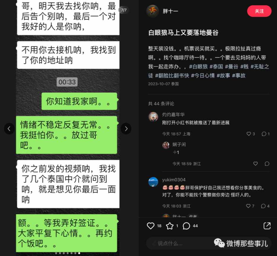 哦对,这女生又说要飞去见他最后一面,说他是最后一个真心对她好的人,因为他发过院子之类的吧,她就靠那个照片问了好多个中介找到他房子所在……但是是不是真的知道以及最终去不去就不知道了,反正博主是铁了心不会见她。