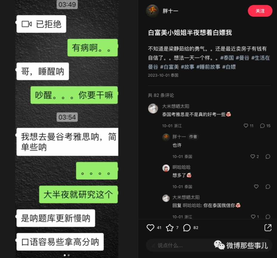 结果就在前阵子,该女生表示要出国留学,还把老家原本要给弟弟的房子卖了作为学费,接着又问博主能不能去他那儿考雅思,听说比国内容易,而且要住博主家里,博主拒绝了