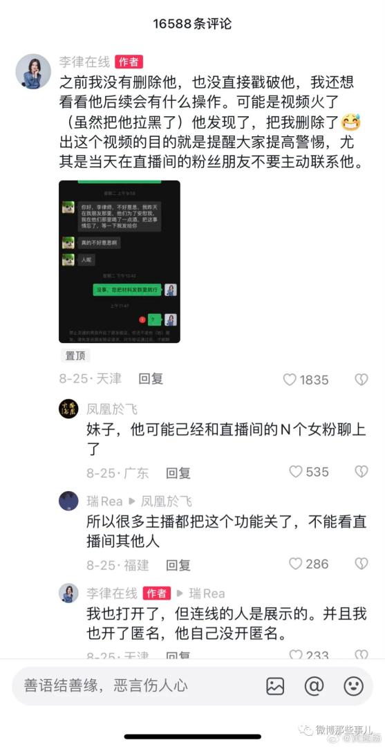 而且律师团队发现,这个男的不仅是要骗律师本人(他多次给女律师本人下套,她工作太忙压根没怎么理,交给团队其他同事负责的)…………他是要塑造的这个傻白甜痴情富二代人设,直接拿下直播间其他同情他的女粉丝!!