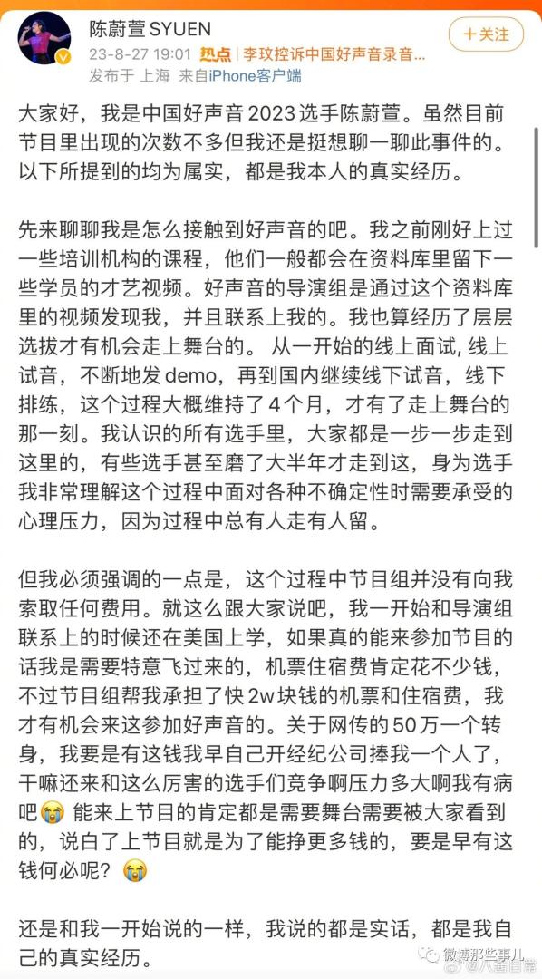 ,我要是给钱了我也会发声明我没给钱,我凭的音乐实力啊