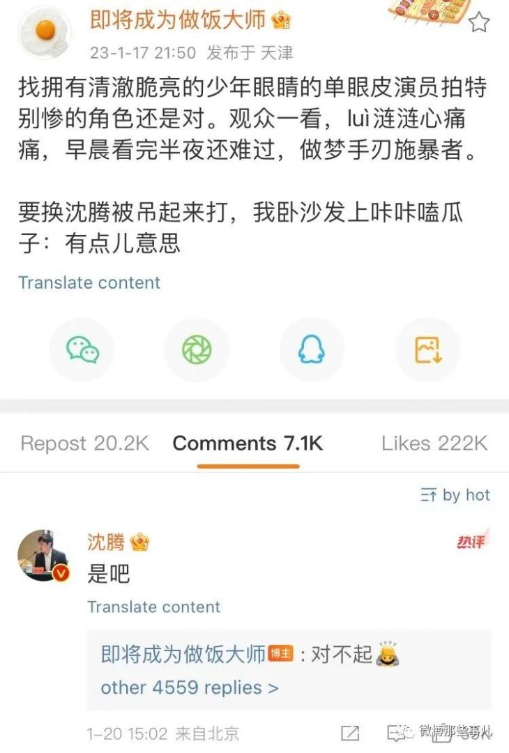 :补充一下:单眼皮演员说的是在狂飙里的张译被吊起来拷问的场景。当时还是除夕夜,沈叔叔早上微博冲浪晚上春晚表演hhh