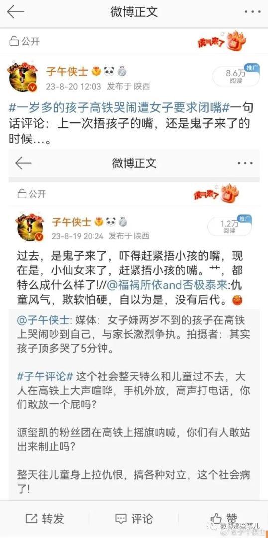 小编在微博上发现,巧合的是,要求一岁孩童高铁闭嘴的人,点开其微博主页,很多都是追星族。