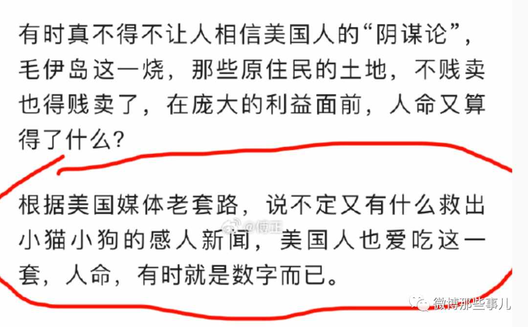 很快,这则推文就被数以万记的网民转发,引发了大量讨论。更有甚者,美国网友发现夏威夷大火诡异之处,只烧毁当地人的房子,而树木几乎完好无损!本着“谁受益谁就可能是凶手”这个思路,比较理性的人认为富豪和当地政府只是没有尽力救火,而更激进的人干脆直接认为这场大火就是人为制造的。其实这是好莱坞编剧的一贯套路,业内人士称为“救猫法则”