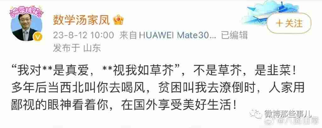 但是,这两天的微博,就有这么一位老师,干了这件被网友称为“抱着炸药包炸粪池”的壮举。这位老师是汤家凤,数学博士,考研数学领域的天花板。