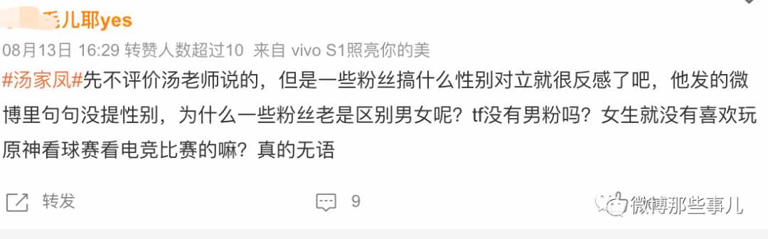 。上一个被他们集火的是翟天临,到现在还没翻身。有位博主为了支持汤家凤,竟然玩起了反串,撕掉了考研数学书,然后给扔了眼看骂不过,饭圈人士就把选择岔开话题,把舆论引向了男女对立。这招真好使,很快落了下风的饭圈人士就得到了一大批朝“性别”开火的支持者