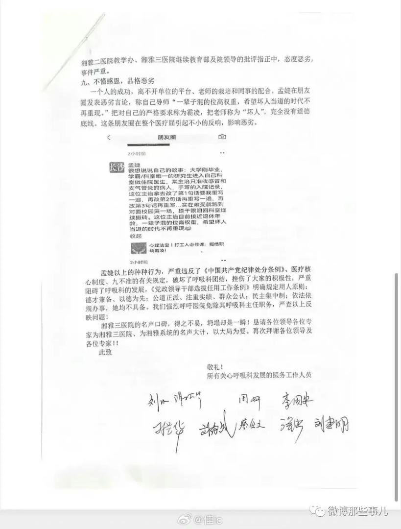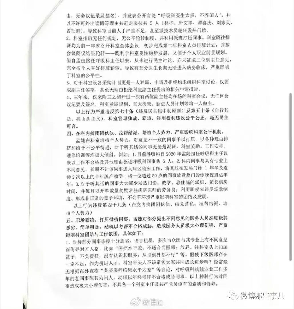 呼吸科主任孟婕被科室九名医务工作人员联名实名举报,签字赫然在目!