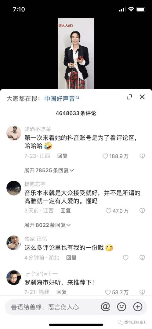 因为一首歌那英的单贴负面评论高达400多万,超过了马蓉。