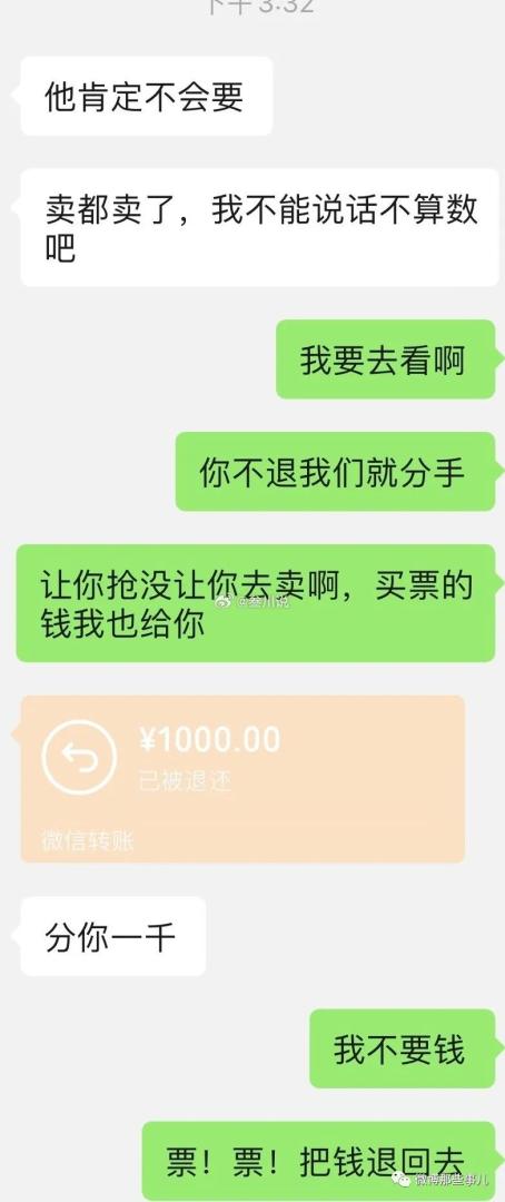 :说句实话这不就是黄牛行为吗…自己明明不想去看但是去抢票加价卖,虽然只有两张票…我要是抢到票了去不了,我原价出给其他粉丝都行,更何况是女朋友。