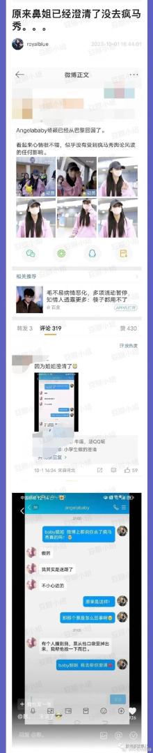纯欲逃犯牛小莉:angelababy和张嘉倪,我帮你们想了个扭转乾坤的办法,现在赶紧发一条微博说:老铁们疯马秀我帮你们看了,回来写repo,气死我了真是。