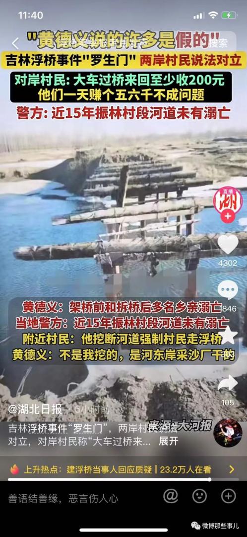浮桥案要反转了?“大善人”被曝打人、日收费过万、挖断河道只能走他的桥