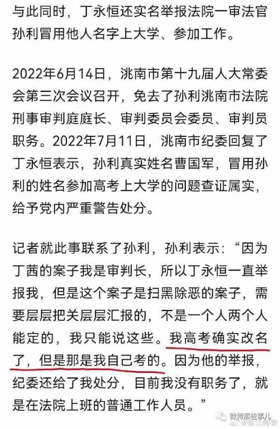 然而,当地镇政府的回应,又将即将反转的事情拉了回来没想到,昨天当地又有其他人爆出审理此事的法官竟然是冒名顶替上高考的他本人是辽宁白城人,听孙利哥哥说内蒙高考分数低,就用了孙利名字去内蒙参加了高考。