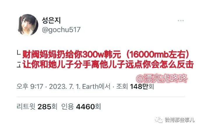 --------------《6》--------------财阀妈妈扔给你300w韩元(1.6w人民币),让你跟她儿子分手,你会怎么反击