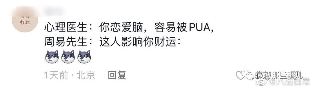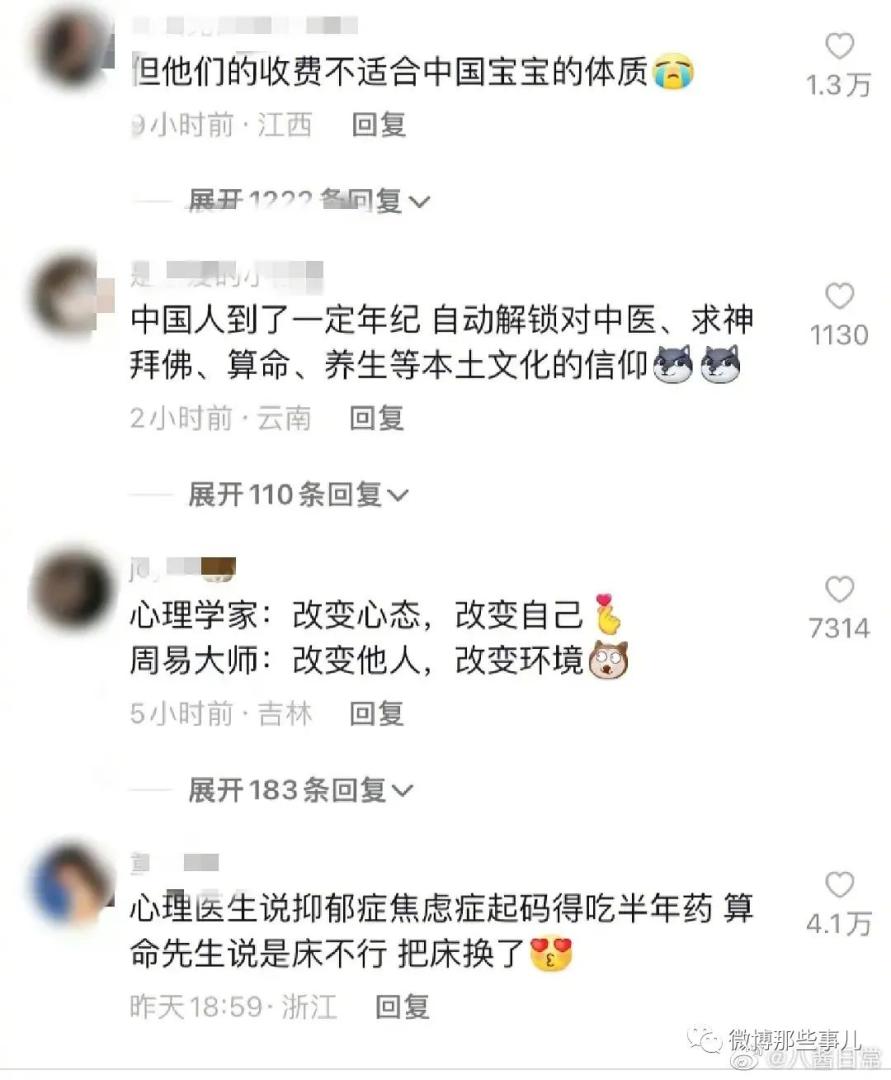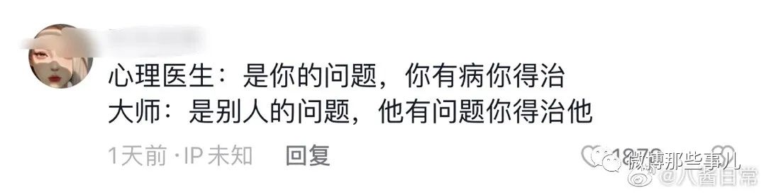 :我陪同学去算命,里面有个阿姨因为跟前夫离婚耿耿于怀,多年放不下导致抑郁。算命的说,幸好离婚了,他外边有人,还克你,你想想你们婚姻期间你是不是经常生病?不离婚你命都没了。你命中注定的人两年后会出现,你不要再想那个人渣了。阿姨脸上立马出现希望,说我看他就不是好东西,还克我![[允悲]](/zb_users/upload/2024/07/wxsync-716842900668e3a163e3521720597014.png)